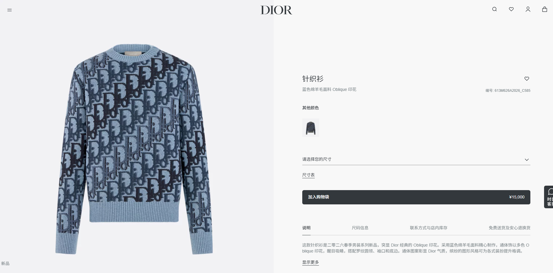 디올 Oblique 니트 스웨터 613M626A2026